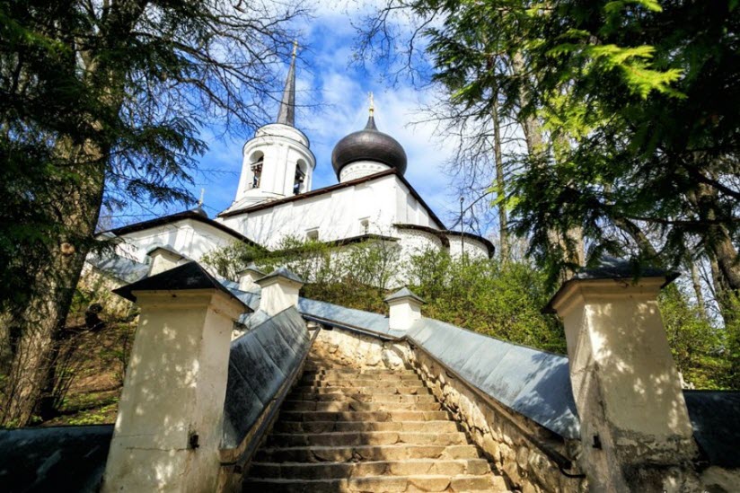 Свято-Успенский Святогорский монастырь особо почитаем не только на Псковщине, но и во всей России. Во время Михайловской ссылки Пушкин часто бывал здесь. Он собирал материалы для трагедии "Борис Годунов", работая в монастырской библиотеке. Он изучал Летописи, «Историю Государства Российского» Н. М. Карамзина, местные источники, пользуясь архивом и библиотекой, которая находилась в светелке «братского» корпуса. Этот монастырь стал для Пушкина последним приютом. Поэт был похоронен у алтарной стены. Спустя четыре года на могиле был установлен мраморный памятник, выполненный по заказу вдовы Пушкина.