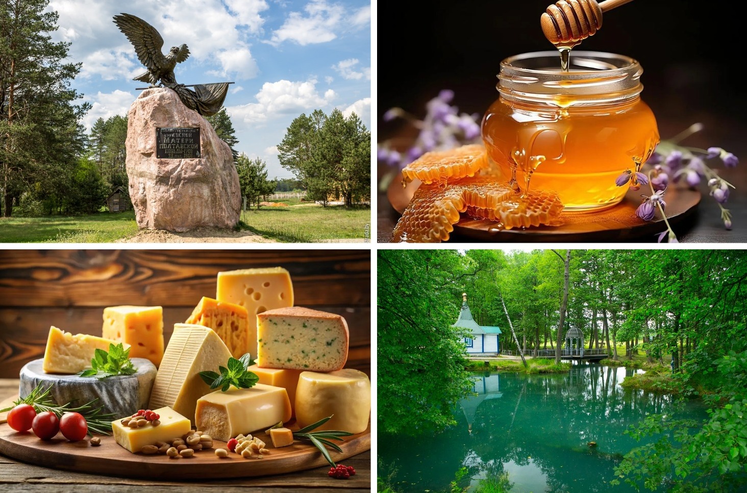 Единение с природой будет ожидать нас и в «Пчелином царстве». Так называются агроусадьба и экомузей. Главные герои здесь – полосатые труженицы. Узнаем много интересного о продуктах пчеловодства и быте бортников прошлого столетия. Нас угостят сытным обедом и научат катать свечи из вощины или займемся процессом выкатки меда. Гастрономическое удовольствие получим также в агроусадьбе «Сырная долина». Изучим несколько технологий приготовления сыров и на мастер-классе попробуем своими руками приготовить этот вкусный продукт, а потом его с удовольствием продегустируем.