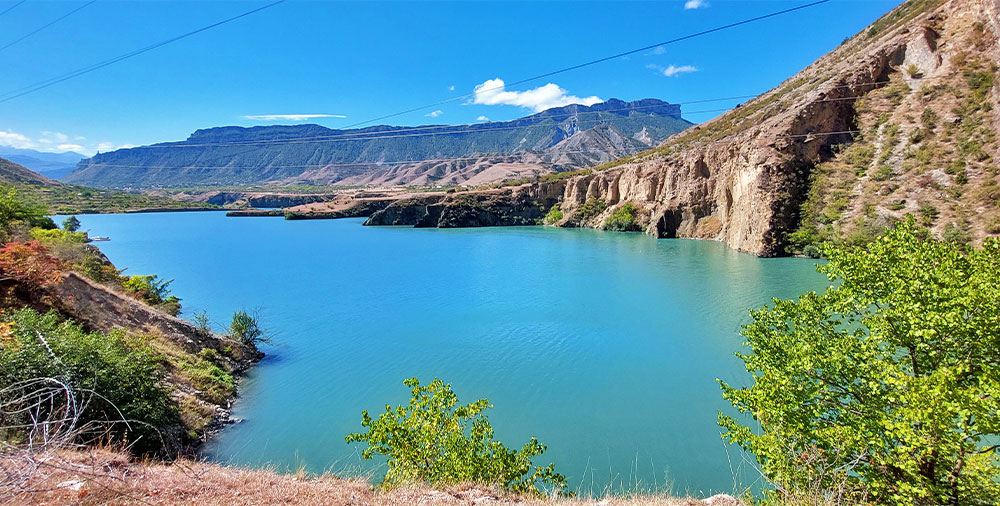 После нам посчастливится увидеть Ирганайское водохранилище, образованное после строительства одноименной ГЭС. Она вторая по мощности на всем Северном Кавказе. Водоем достигает в ширину полутора километров, а береговая линия тянется на 43 километра. Туристы признают дорогу вдоль искусственного моря одной из самых красивых в регионе. Еще бы: в изумрудном зеркале отражаются горы. А за то, что скалистые берега залива врезаются в сушу, это место сравнивают с норвежскими фьордами.