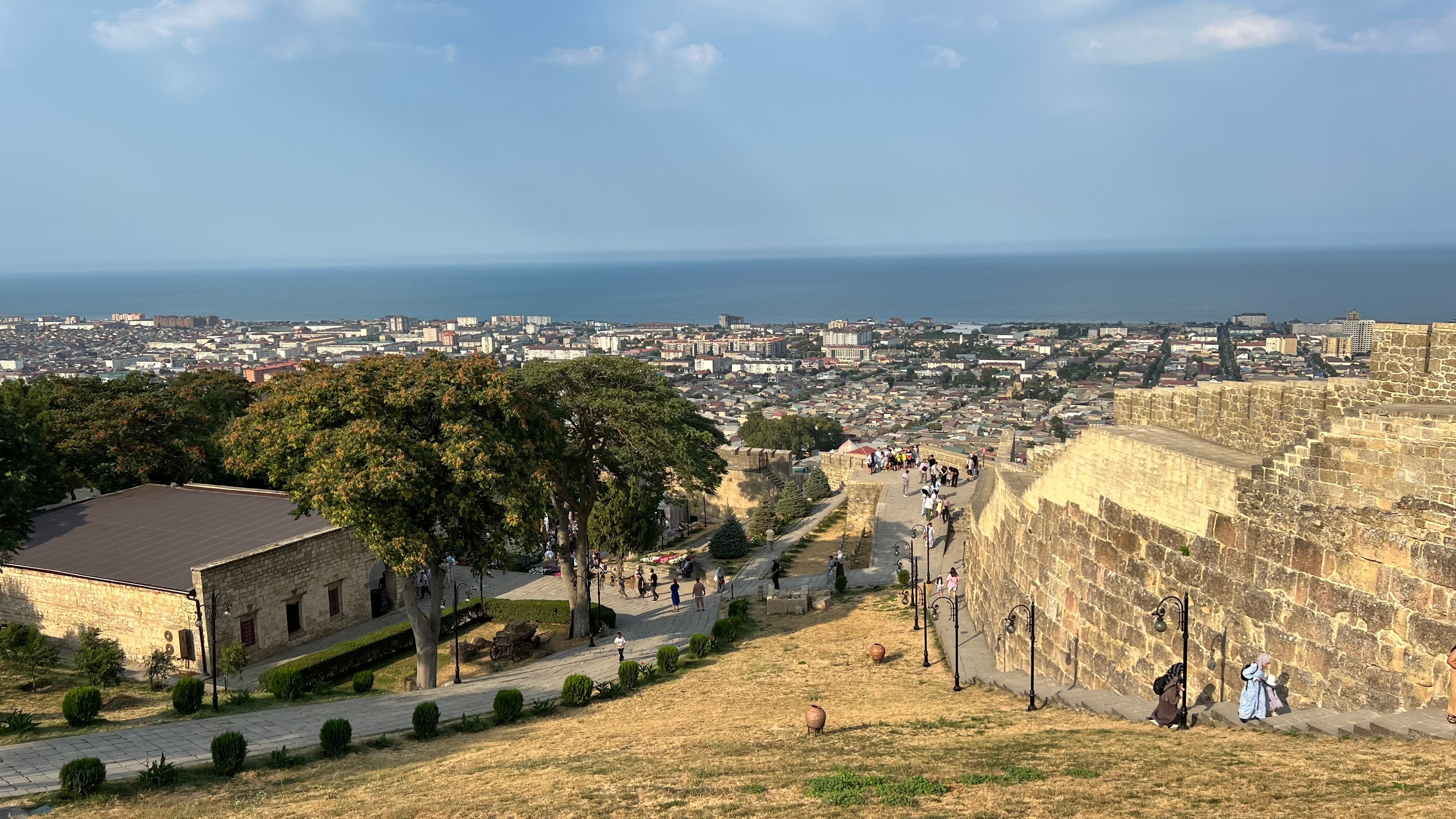 Крепость Нарын-кала возвели полторы тысячи лет назад и дали название, означающее «закрытые ворота». Узкий проход между Кавказскими горами и Каспийским морем оказался под надежной защитой. Прогуляемся по стенам высотой до 20 метров, чтобы почувствовать себя древними воинами в дозоре. Отсюда открывается невероятно живописный вид. Внутри крепости частично сохранился ханский дворец. Также увидим здание старинной гауптвахты и загадочное крестово-купольное сооружение, о предназначении которого до сих пор спорят.
