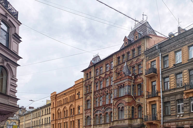Увидим необычный даже для модерна доходный дом Эйлерса. Узнаем о жизни самого знаменитого цветочника Петербурга того времени. Здание построил его сын в соавторстве с Фёдором Лидвалем.