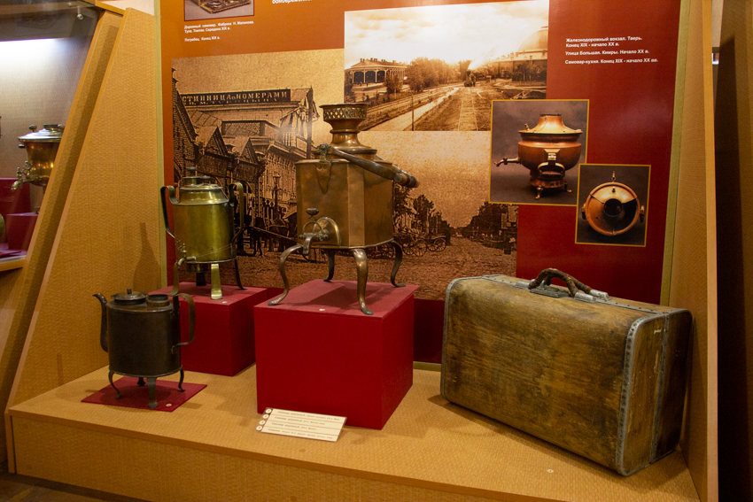 Трудно вообразить настоящий домашний уют без традиционного чаепития и самовара! Поэтому далее мы отправляемся узнать всё самое интересно об истории этого «водогрейного сосуда» в России! Сбитенники, дорожные самовары и самовары-«эгоисты», бульотки и чаеварки, подносы, щипцы для колки сахара, посуда — всё это поражает своей красотой и разнообразием. Нам расскажут о тверских традициях купеческого чаепития, русских обычаях застолья, истории появления самовара на Руси и многом другом. Завершим экскурсию беседой за чаем с настоящими русскими угощениями: пряниками, сушками, баранками и сухарями.