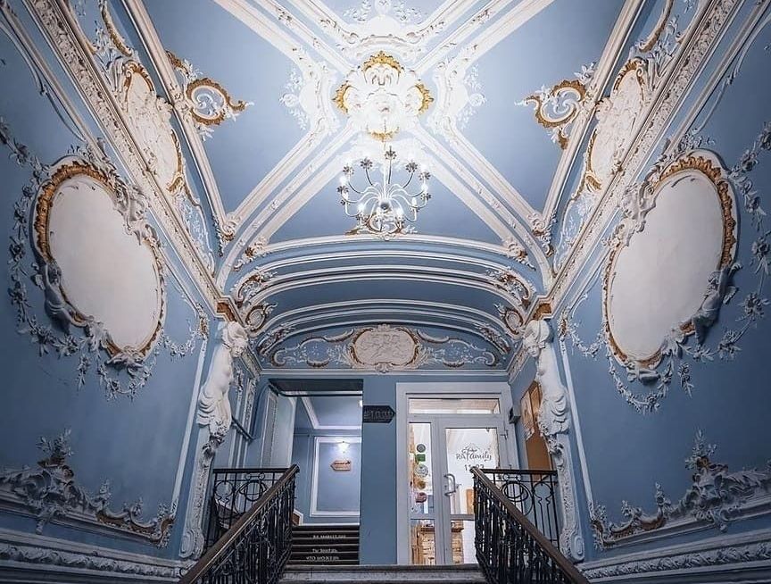 Следующей остановкой станет особняк миллионера, «водочного короля» и откупщика Василия Семеновича Каншина, построенный по проекту Густава Барча в стиле эклектики. Особого внимания заслуживает голубая парадная с изысканной позолоченной лепниной и изумительными горельефами: купидонами и кариатидами, в которую мы обязательно зайдем. Здесь архитектор соединил барокко со стилем модерн, что в итоге вылилось в прекрасный архитектурный ансамбль. Кто такие винные откупщики? Какими привилегиями они пользовались? Почему Василия Каншина называли «водочным королём»? Наш гид ответит на эти и многие другие вопросы.