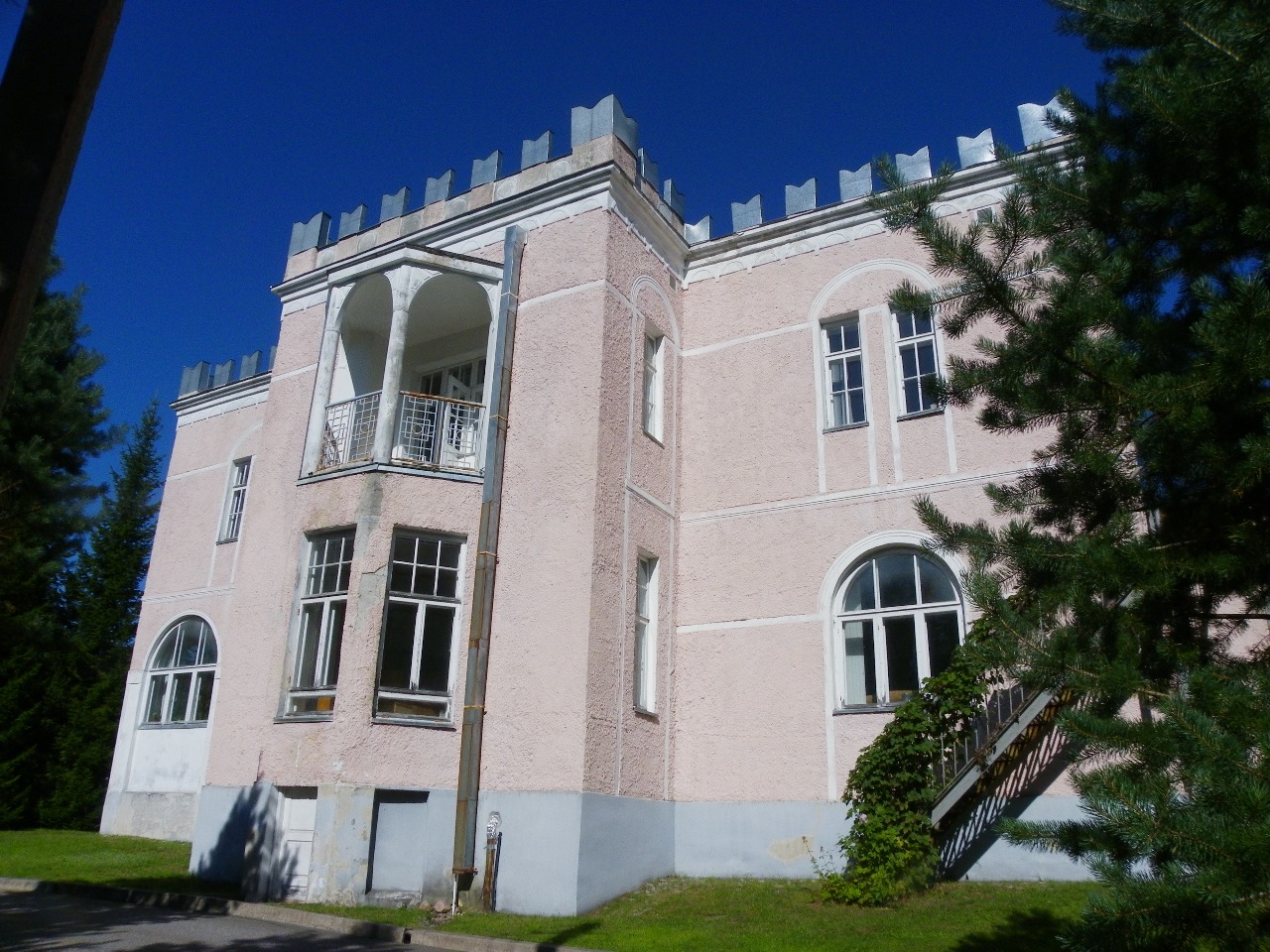 Розовый дом на окраине Лахденпохьи привлекает внимание необычной архитектурой. Кто-то сравнивает здание с итальянской виллой, кто-то – с замком. Этот шедевр был создан по заказу финского фабриканта Таскинена в 1914 году. Бизнесмен пригласил алжирского архитектора, который и создал особняк, больше похожий на крепость. Его отличают круглая центральная часть и зубчатые выступы по всему периметру крыши. После смерти владельца его сыновья продали здание муниципалитету. Здесь создали детский дом. В советские времена в особняке размещались отель, ресторан, городской совет. Сейчас здание имеет статус памятника регионального значения. Мы полюбуемся его обликом и узнаем больше об истории усадьбы.