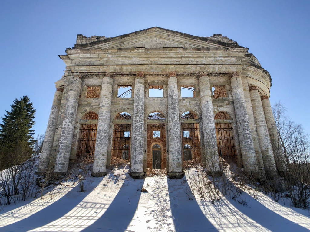 Далее наш путь лежит к «исчезающей на глазах» усадьбе Пятая Гора. Среди её живописных развалин пока ещё удаётся разглядеть кирпичные парковые ворота и старинную церковь Святой Троицы. На прогулке вокруг храма, напоминающего лёгкую античную ротонду, мы вспомним об истории Пятогорской мызы, её владельцах, в том числе, об Ольге Константиновне Брискорн, получившей за свою жестокость прозвище «курской Салтычихи».