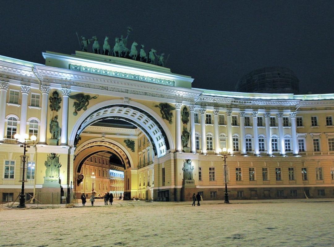 Вечерняя экскурсия не может обойтись без Дворцовой площади. Весь комплекс - Эрмитаж, Главный штаб и его арка ночью выглядят совершенно сказочно. Ощущение рождественского чуда царит здесь и зимой, и летом.