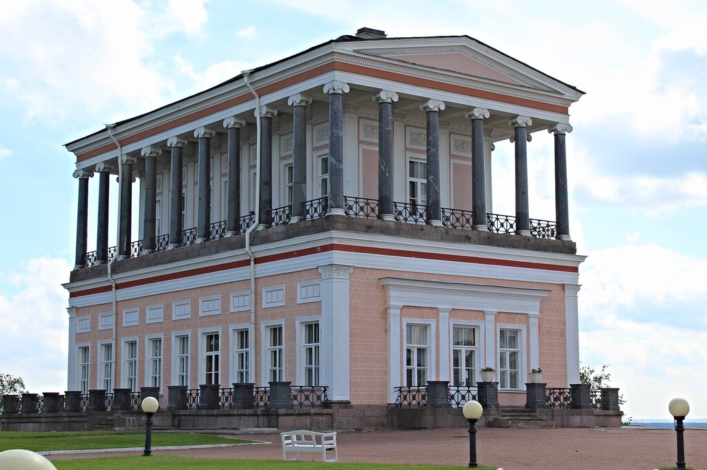Император Николай I во время прогулки по Луговому парку, любуясь прекрасным пейзажем, решил построить на самой высокой возвышенности павильон для своей супруги Александры Фёдоровны. Император, хорошо знавший строительное дело и архитектуру, вспомнил о храме Эрехтейона в Афинах и задумал создать строение в древнегреческом стиле. Он сам выполнил эскиз здания и отправил рисунок своему любимому архитектору Андрею Ивановичу Штакеншнейдеру для того, чтобы он разработал проект, который стал лучшим его произведением.