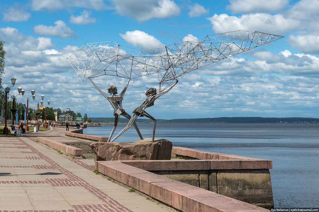 Более необычную коллекцию уличных скульптур, чем на набережной Петрозаводска, сложно представить. Каждая композиция – подарок от города-побратима, коих у карельской столицы больше 20. На полуторакилометровой территории соседствуют французская «Спящая красавица», норвежское «Место встречи», американские «Рыбаки», немецкое «Тюбингенское панно», шведское «Дерево желаний», финская «Волна дружбы», латвийский «Кошелек удачи» и еще несколько диковинных объектов. К тому же, в районе набережной сосредоточены и другие живописные места – Петровский сад, Прибрежный парк, Белая Ротонда.