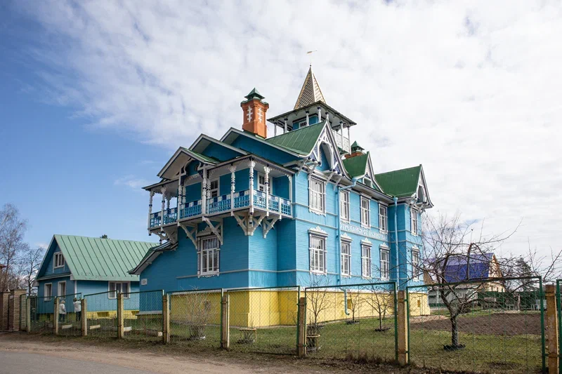 Вырицу называют «Столицей трезвости», потому что здесь действует община христиан-трезвенников. Место для себя они выбрали на редкость живописное. Необычный синий дом с зеленой крышей, от резных перил и наличников которого трудно оторвать взгляд. Венчает здание башенка, вызывающая «книжные» ассоциации. Примечателен дом не только своей архитектурой, но и историей. Самарский крестьянин Иван Чуриков провозгласил себя главой общины трезвенников. При вступлении в братство необходимо было дать обед навсегда проститься с алкоголем. Во время обряда взамен страждущий получал кусочек сахара, символизирующий сладкий путь после отказа от спиртного. Судьба предводителя оказалась нелегкой – духовная консистория признавала его сектантом, а умер Чуриков по пути в тюрьму. В 90-е годы общину возродили, последователи уверовали в божественное происхождение наставника. На экскурсии узнаем подробнее, как велась деятельность в общине, и кто стал автором архитектурного чуда.