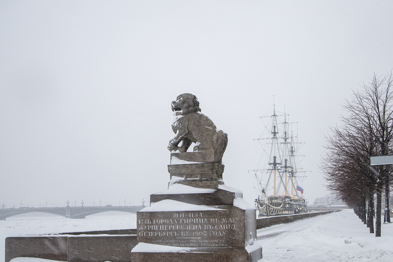 Проезжая по Университетской набережной, вспомним легенду Кунсткамеры. Затем маршрут будет пролегать по Петроградской стороне. Услышим про главный миф основания города на «пустынных берегах», полюбуемся Петропавловской крепостью и сделаем остановку на пристани Петровской набережной. Здесь привлекают внимание мифологические львы, охраняющие спуск к реке. В высоту фигуры достигают 4,5 метра. В китайской культуре существовал обычай устанавливать таких зверей на входе в сакральные сооружения. Тем самым удавалось уберечь их от злой силы. Шар под лапой тоже имеет свой символизм – знание, несущее свет во тьму, и способность исполнять мечты. Узнаем историю, предшествовавшую установке гранитных стражей. Пристань с Ши-Цза обустроили в 1907 году, когда уже построили Троицкий и Литейный мосты. Во время прогулки поговорим и о мифах, связанных с этими переправами.
