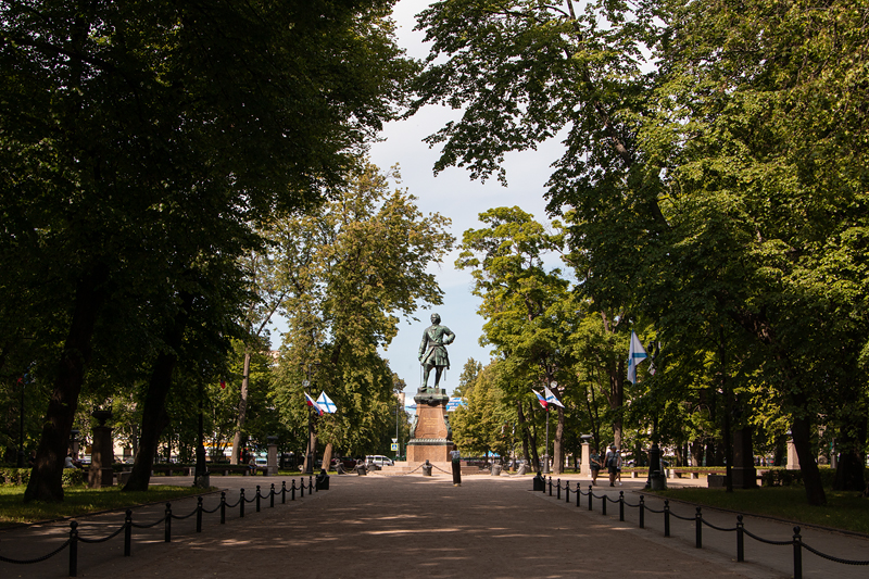 В самом сердце Кронштадта есть место, пронизанное тишиной и спокойствием, это Петровский парк, который иногда называют местом встречи романтиков. В центре его, по велению Николая I, установлен памятник основателю города Петру I. Мы прогуляемся по уютным аллеям и выйдем к набережной парка и Петровской пристани. В военные годы здесь традиционно собирались родные и близкие моряков, уходивших в боевые походы, чтобы проводить их и пожелать «счастливого плавания». Здесь же встречали всех почётных гостей, в том числе и из-за рубежа, например, командующих эскадрами и моряков кораблей Франции, Англии, Германии, приходивших в Кронштадт с дружественными визитами.