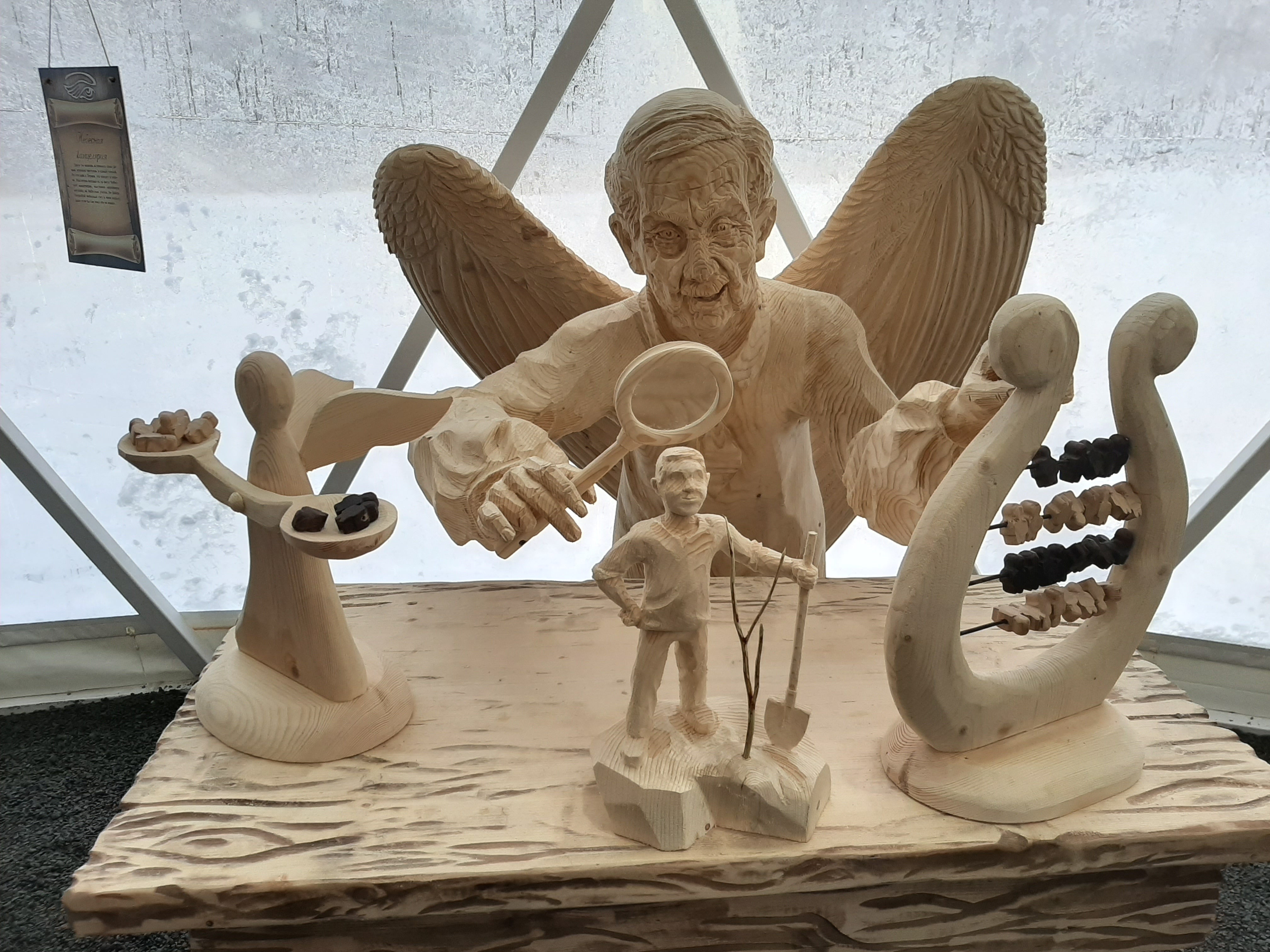 «Обитель ангелов» – это целый мир, где люди и ангелы живут вместе и тесно связаны друг с другом. Все композиции уникальны и имеют свою философию. Чтобы гостям было интереснее изучать экспонаты, рядом с каждой сценой установлена поясняющая табличка, рассказывающая удивительную историю.