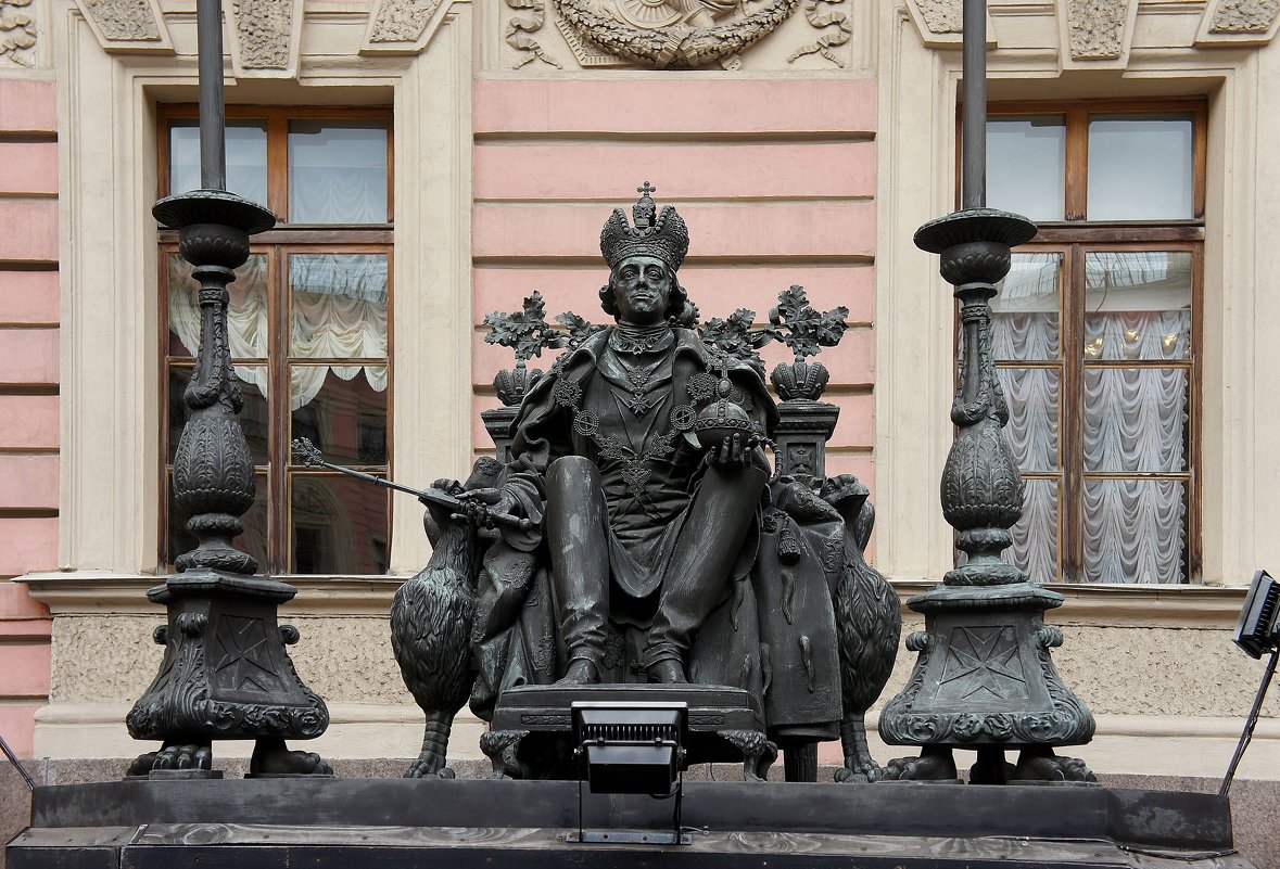 Посмотрим на скульптуру Павла I во дворе Михайловского замка – это первый памятник правителю в Санкт-Петербурге. Работа скульптора В.Э. Горева и архитектора В.И. Наливайко, отлитая из бронзы, была установлена в 2003 году.