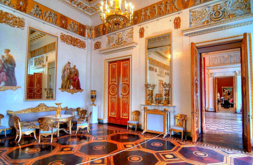 Пройдем по парадным покоям, в том числе недавно открывшимся после реставрации, обратим внимание на убранство и интерьеры, а также оценим коллекцию картин и скульптур.